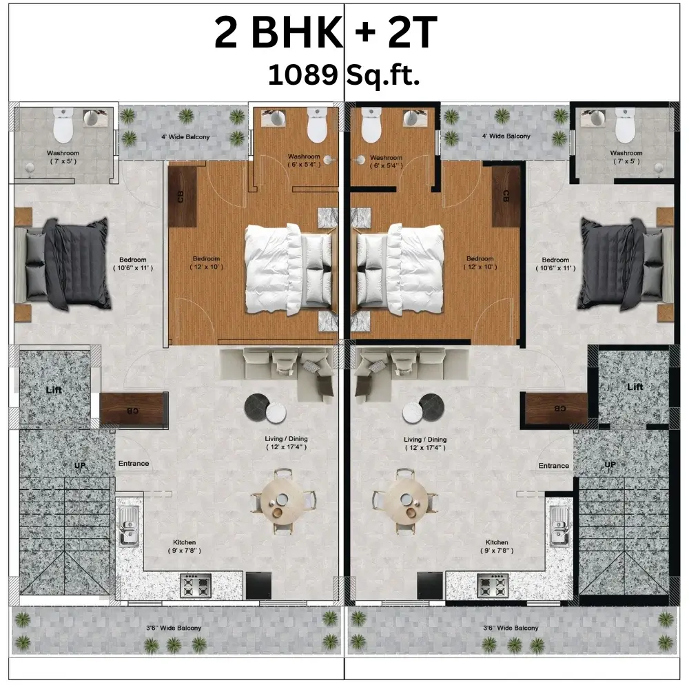 | 2Bhk + 2T | 1089 Sq. ft | 1.37 Cr* |