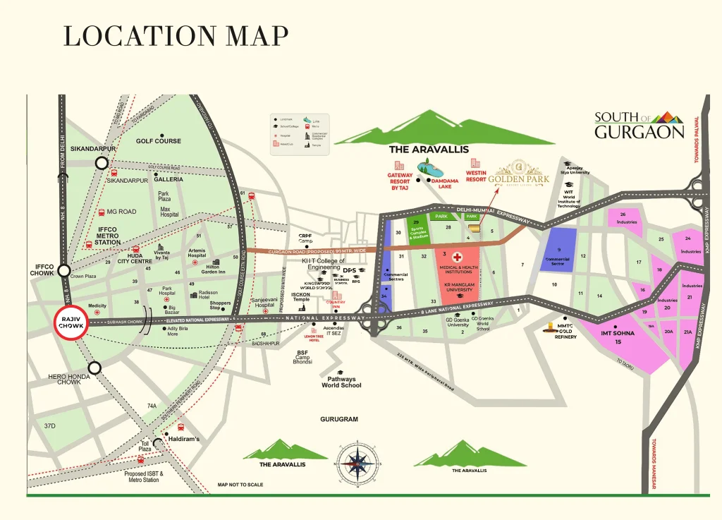 The project is approximately 2.2 kilometers from Sohna Gurgaon Road.