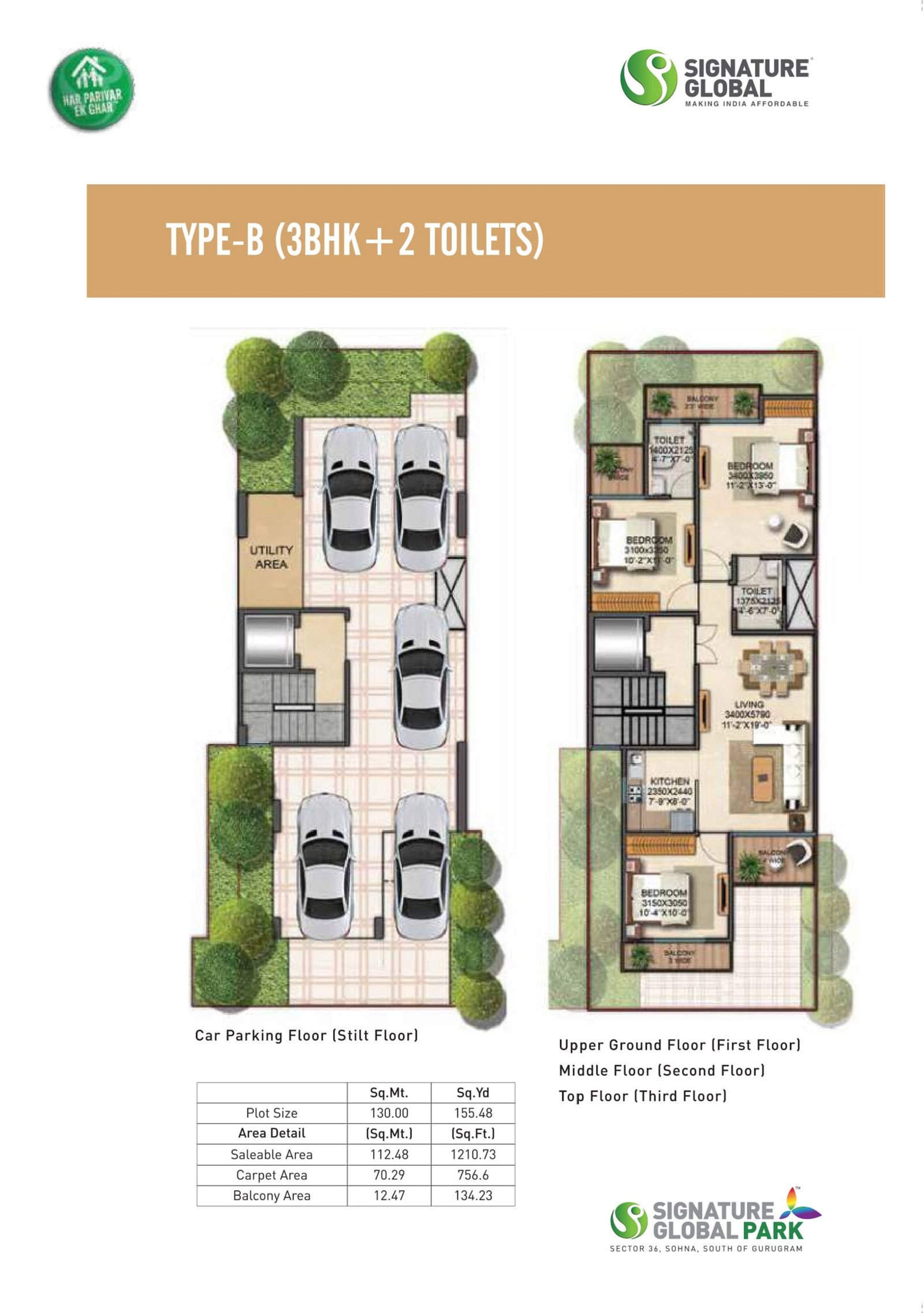 Signature Global offers independent floors, primarily 2BHK and 3BHK units.